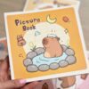 • okładka miękka przedstawiająca kapibarę relaksując się w gorącym źródle, otoczoną grafikami przekąsek i księżyca