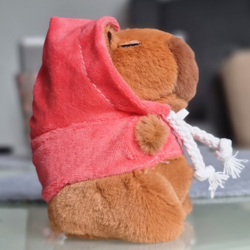 Idealnie nadaję się jako gadżet lub mały upominek. Miła w dotyku, przyjemna, wzbudzająca pozytywne emocje. Świetnie sprawdzi się jako brelok do plecaka, kluczy, torebki czy do powieszenia np.nad biurkiem. Kapibara posiada piękny dekoracyjny element, w postaci bluzy z kapturem, który dodaje jej jeszcze więcej charakteru, dzięki czemu wyróżnia się na tle innych maskotek.