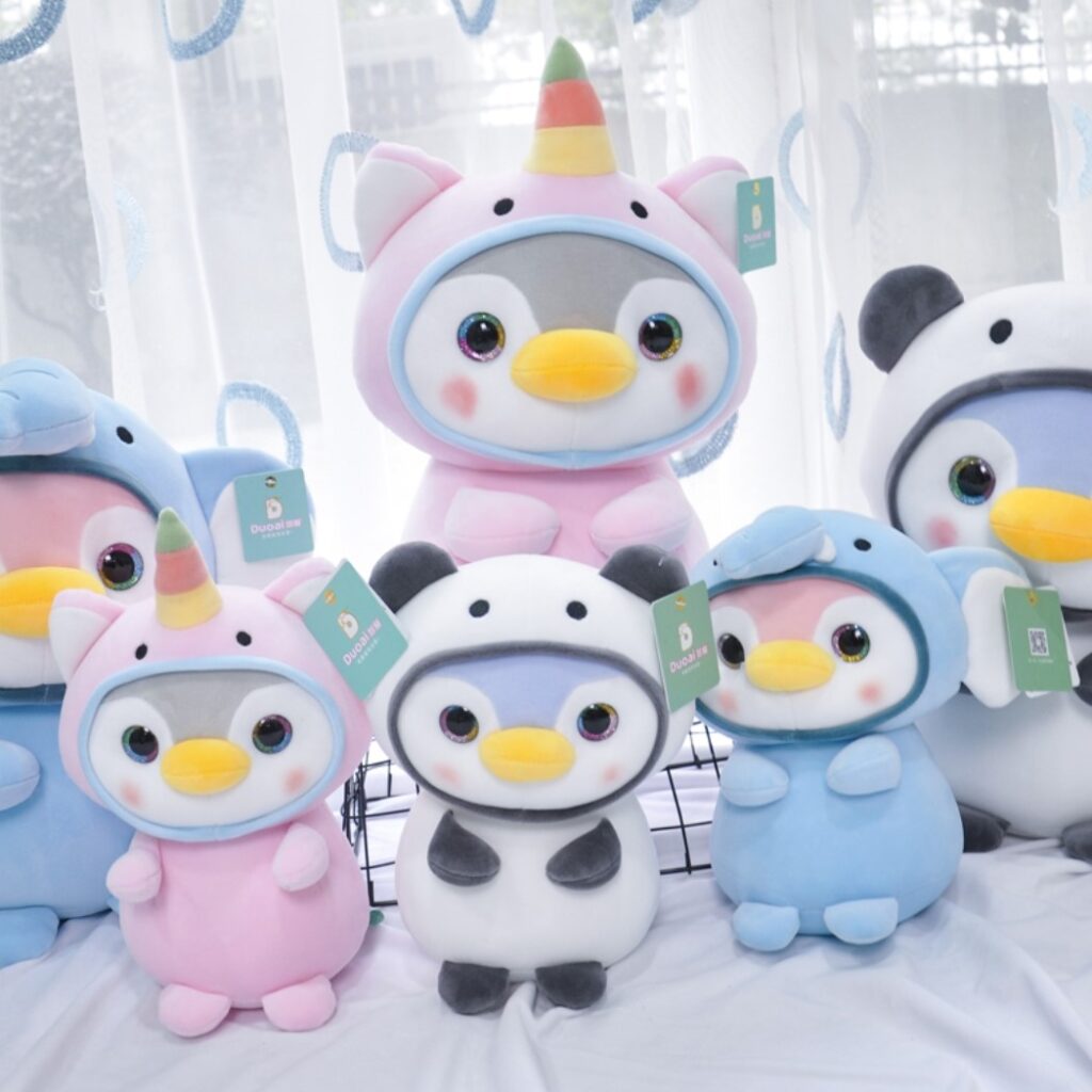 Maskotka pluszak słodki pingwin w przebraniu pandy