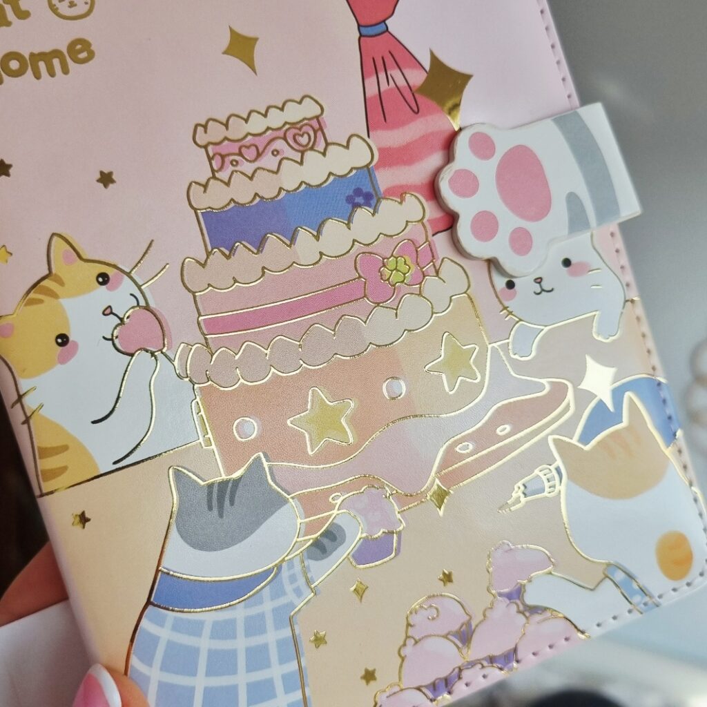 Jest to produkt w stylu kawaii , który charakteryzuje się okładką z materiału przypominającego skórę oraz magnetycznym zapięciem w kształcie kociej łapki.
