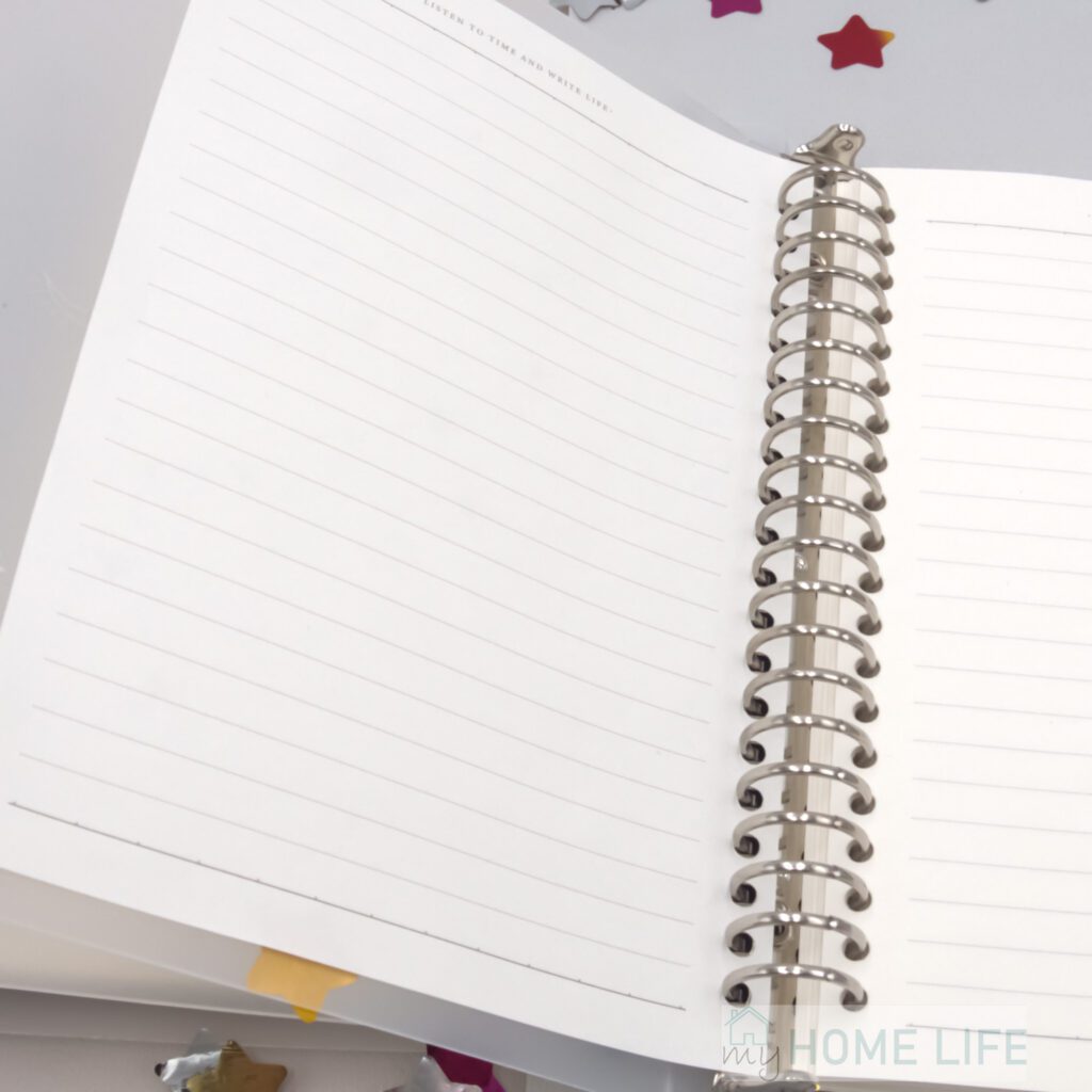 - na kartkach na górze napis ” LISTEN TI TIME AND WRITE LIFE”