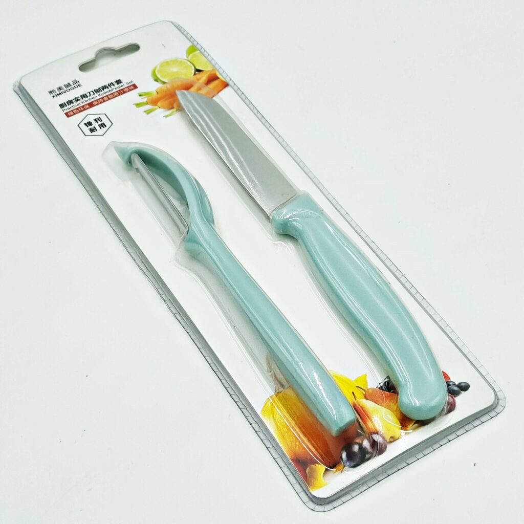 Nóż z obieraczką zestaw kuchenny niebieski