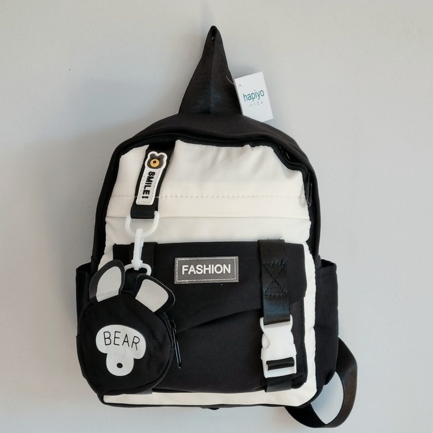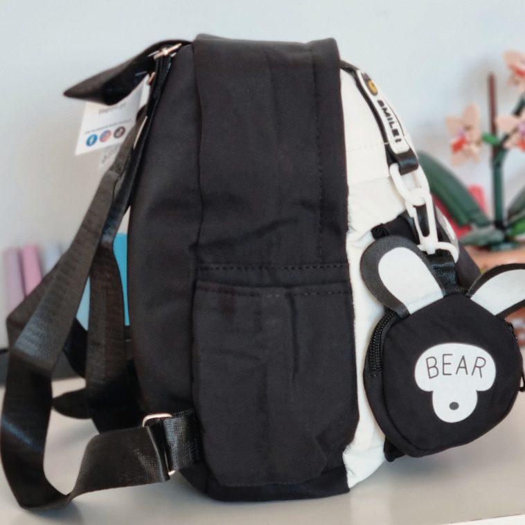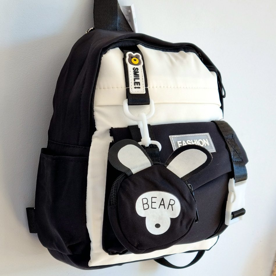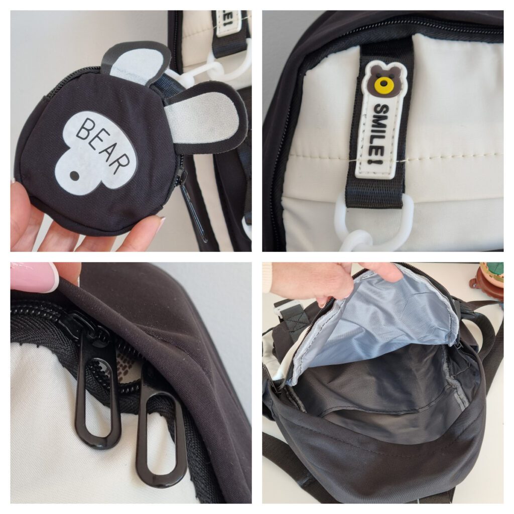 • Design 2w1: Do plecaka dołączony jest uroczy, odpinany portfelik (sakiewka) w kształcie misia z napisem „BEAR” – idealny na drobne, klucze lub słuchawki.