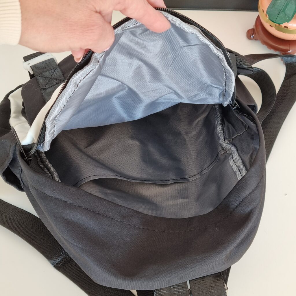 • Duża komora główna: Pomieści notes, butelkę wody i najpotrzebniejsze przedmioty.